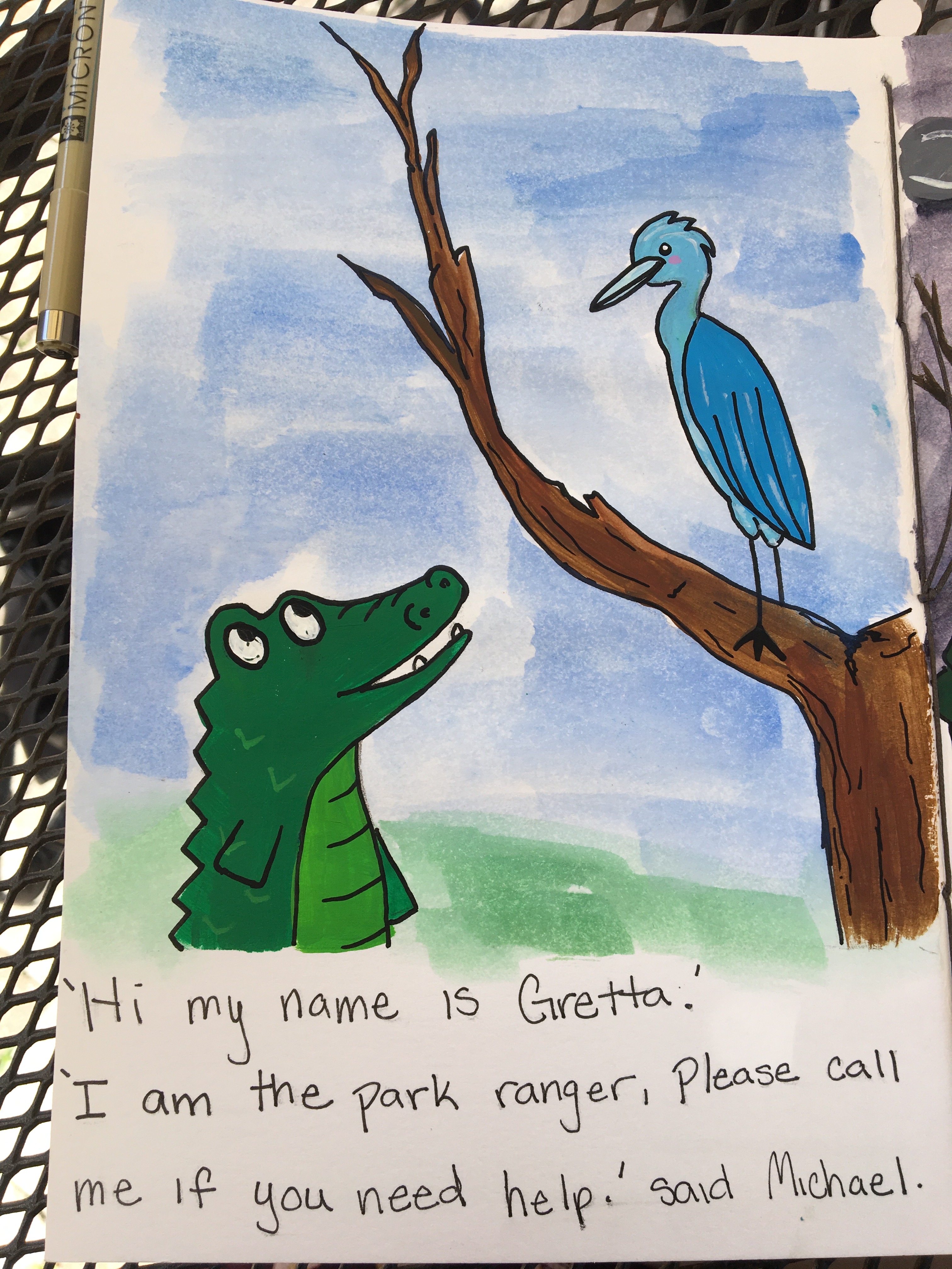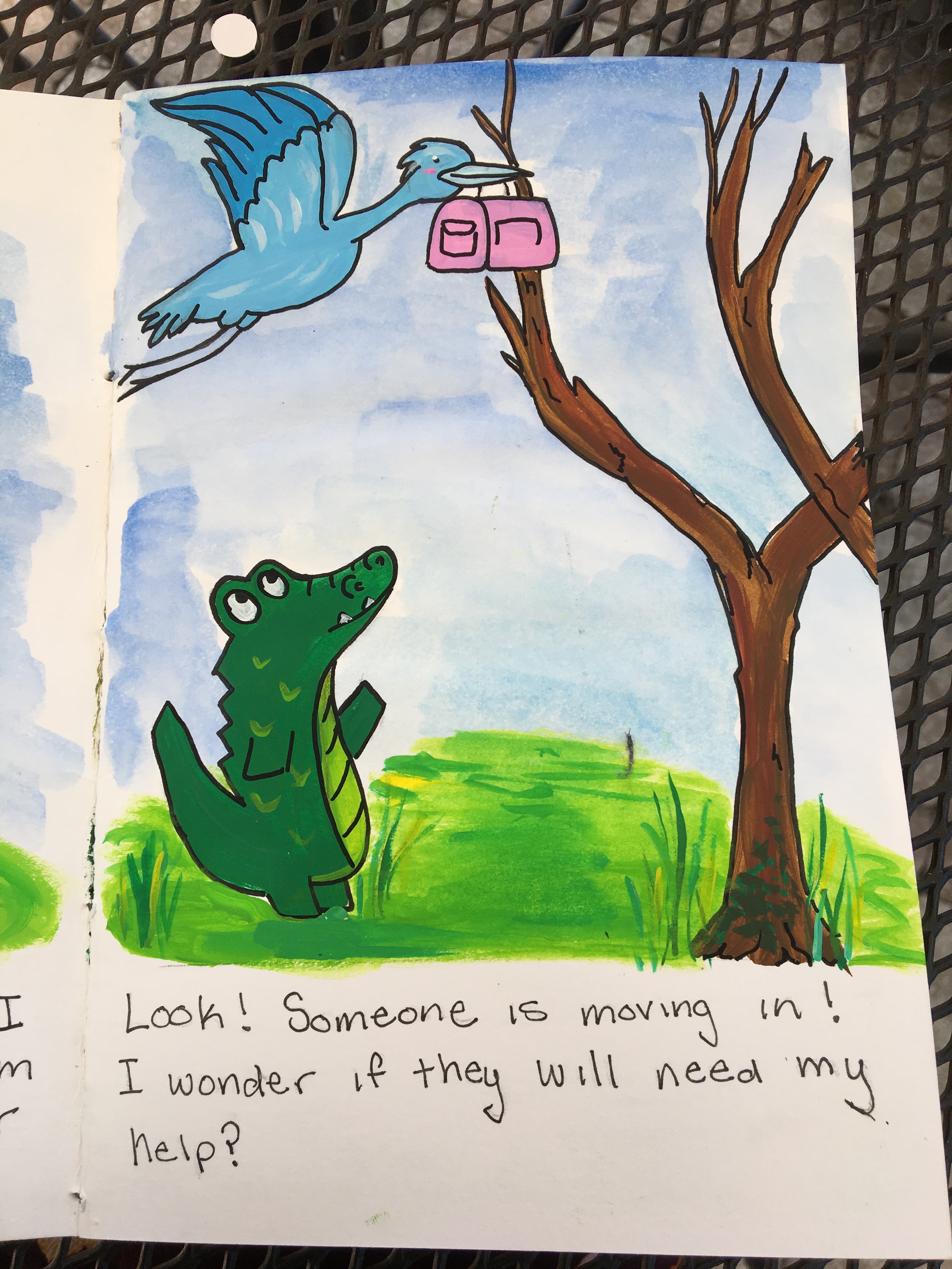 A long-term career goal I have is to write and illustrate a children’s science book. In this project I tried to illustrate the mutual relationship alligators and birds share. In a recent study scientists tested the “Nest Protector” hypothesis which proposed a specific mutuality between herons and egrets and American alligators. The study suggested this interaction is critical to shaping management and conservation of wetland ecosystems.