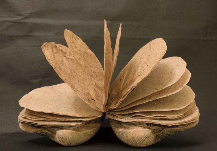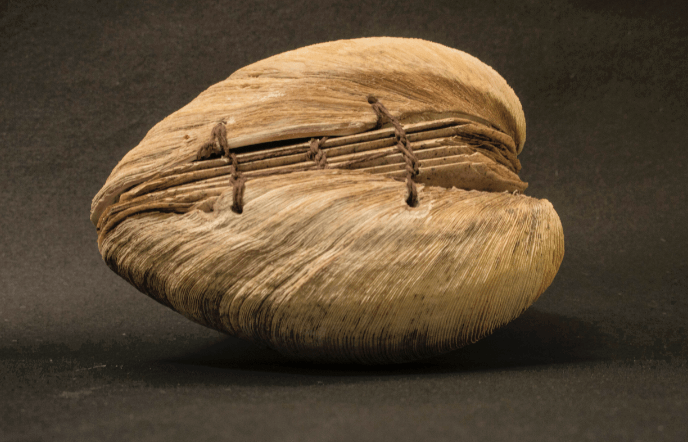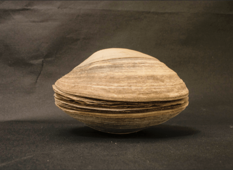 Below is the outcome of my experiment, bound between two clam shells using a wax covered cotton thread.